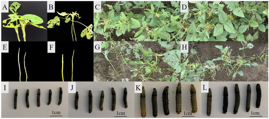 - Hu, Z.; Xu, X.; Pan, L.; Li, M.; Zeng, J.; Muhammad, K.R.; Xing, G.; Gai, J. Resistance analyses of soybean organs to common cutworm (Spodoptera litura) at different reproductive stages. Soybean Sci. 2020, 39, 932–939. [Google Scholar]