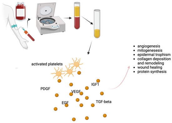 - Cecerska-Heryć, E.; Goszka, M.; Serwin, N.; Roszak, M.; Grygorcewicz, B.; Heryć, R.; Dołęgowska, B. Applications of the Regenerative Capacity of Platelets in Modern Medicine. Cytokine Growth Factor. Rev. 2022, 64, 84–94. [Google Scholar] [CrossRef] [PubMed]