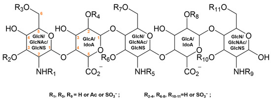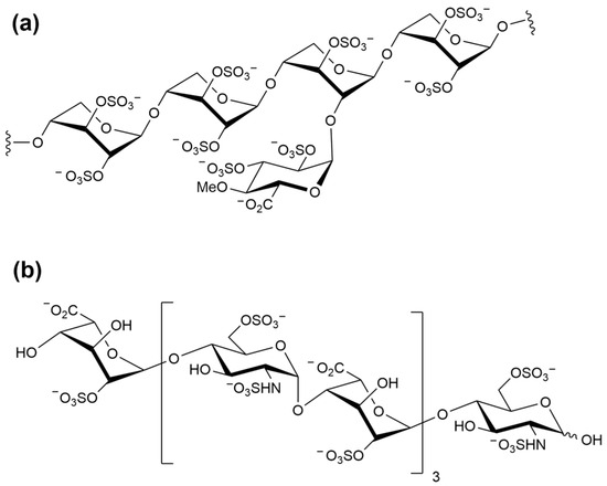 Structure of (a) pentosan polysulfate (PPS) [20]; (b) (IdoA2S-GlcNS6S)4 [6].
