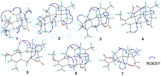 Key ROESY correlations of compounds 1–7.
