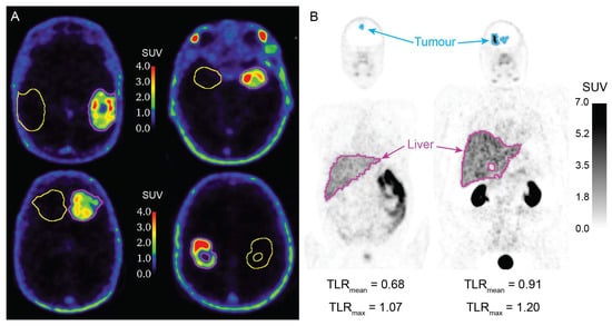 - Filss, C.P.; Albert, N.L.; Böning, G.; Kops, E.R.; Suchorska, B.; Stoffels, G.; Galldiks, N.; Shah, N.J.; Mottaghy, F.M.; Bartenstein, P.; et al. O-(2-[18F]Fluoroethyl)-l-Tyrosine PET in Gliomas: Influence of Data Processing in Different Centres. EJNMMI Res. 2017, 7, 64. [Google Scholar] [CrossRef] [PubMed]