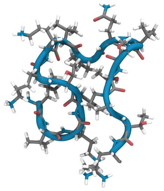 The three-dimensional high-resolution NMR structure of EPI-X4 (PDB ID: 2nOx) [6] was used as the experimental reference and is henceforward labeled as structure N0.