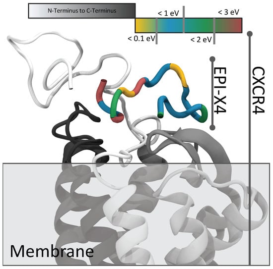 Thus, EPI-X4 represents an elegant substance to regulate the receptor, though the required concentrations are relatively high, rendering a therapeutic application difficult [6,8,9]. Crucial for the improvement in anti-CXCR4 activity is an understanding of the docking process of EPI-X4 to the receptor [9]. Biochemical approaches show function and interactions of biologically relevant molecules only on larger scales, though more detailed insights even at the atomistic (or molecular) level are indispensible. The lack of suitable experimental methods to gain atomistic details for describing the dynamic evolution of the structure can be circumvented by theoretical simulations [9,10,11,12,13].