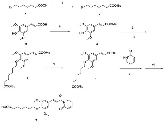 The synthesis of piperlongumine derivatives is described in Scheme 1. We used a method similar to the one reported in the literature to generate compound 7 [21].