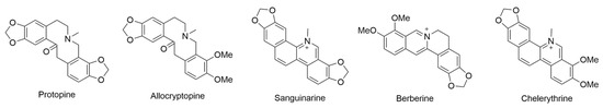 - Stermitz, F.R.; Workman, S.M.; Klein, W.M. Alkaloids of Argemone glauca var. glauca. Phytochemistry 1971, 10, 675–677. [Google Scholar] [CrossRef]