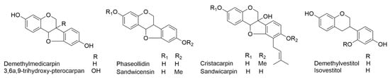 - Ingham, J.L. Induced isoflavonoids of Erythrina sandwicensis. Z. Naturforschung C 1980, 35, 384–386. [Google Scholar] [CrossRef]