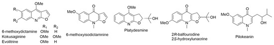- Fish, F.; Gray, A.I.; Waterman, P.G. Alkaloids, coumarins, triterpenes and a flavanone from the root of Zanthoxylum dipetalum. Phytochemistry 1975, 14, 2073–2076. [Google Scholar] [CrossRef]