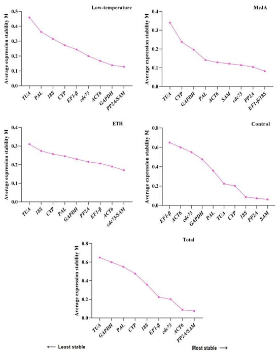 | 7 | EF1-β 0.573 | GAPDH 0.665 | CYP 0.807 | PAL 0.277 | EF1-β 0.965 |