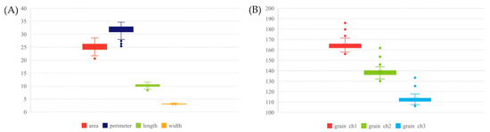 - Whan, A.P.; Smith, A.B.; Cavanagh, C.R.; Ral, J.-P.F.; Shaw, L.M.; Howitt, C.A.; Bischof, L. GrainScan: A low cost, fast method for grain size and colour measurements. Plant Methods 2014, 10, 1–10. [Google Scholar] [CrossRef] [PubMed]