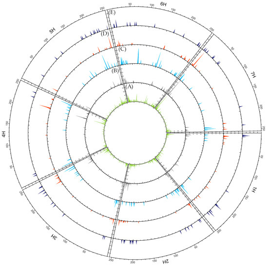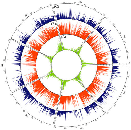 - Mascher, M.; Gundlach, H.; Himmelbach, A.; Beier, S.; Twardziok, S.O.; Wicker, T.; Radchuk, V.; Dockter, C.; Hedley, P.E.; Russell, J. A chromosome conformation capture ordered sequence of the barley genome. Nature 2017, 544, 427–433. [Google Scholar] [CrossRef]