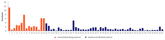 - Nadeem, M.A.; Yeken, M.Z.; Tekin, M.; Mustafa, Z.; Hatipoğlu, R.; Aktaş, H.; Alsaleh, A.; Cabi, E.; Habyarimana, E.; Zencirci, N. Contribution of Landraces in Wheat Breeding. In Wheat Landraces; Springer International Publishing: Cham, Switzerland, 2021; pp. 215–258. [Google Scholar] [CrossRef]