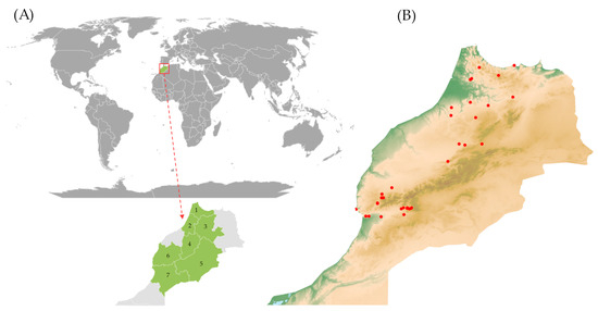 - Valdés, B. Catalogue des Plantes Vasculaires du Nord du Maroc, Incluant des clés D’Identification; CSIC: Madrid, Spain, 2002; Volume 1. [Google Scholar]
