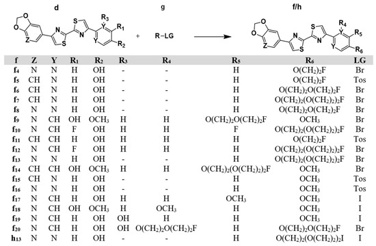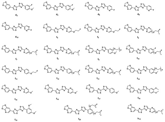 - Uzuegbunam, B.C.; Li, J.; Paslawski, W.; Weber, W.; Svenningsson, P.; Ågren, H.; Yousefi, B.H. Toward Novel 18FFluorine-Labeled Radiotracers for the Imaging of α-Synuclein Fibrils. Front. Aging Neurosci. 2022, 14, 830704. [Google Scholar] [CrossRef]