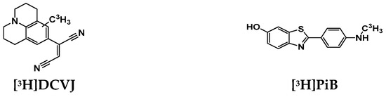 - Mathis, C.A.; Lopresti, B.J.; Ikonomovic, M.D.; Klunk, W.E. Small-molecule PET Tracers for Imaging Proteinopathies. Semin. Nucl. Med. 2017, 47, 553–575. [Google Scholar] [CrossRef] [PubMed]