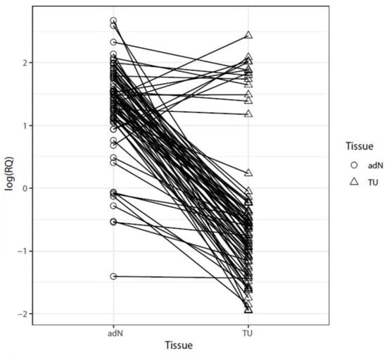 2.1. Analysis of mRNA Expression in Paired Tumor and Normal Adjacent RCC Tissues