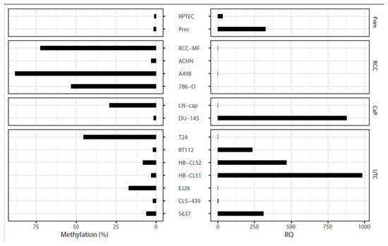 - Gebauer, K.; Peters, I.; Dubrowinskaja, N.; Hennenlotter, J.; Abbas, M.; Scherer, R.; Tezval, H.; Merseburger, A.S.; Stenzl, A.; Kuczyk, M.A.; et al. Hsa-mir-124-3 CpG island methylation is associated with advanced tumours and disease recurrence of patients with clear cell renal cell carcinoma. Br. J. Cancer 2013, 108, 131–138. [Google Scholar] [CrossRef]
