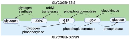 - Smith, E.E.; Taylor, P.M.; Whelan, W.J. Enzymic Processes in Glycogen Metabolism. In Carbohydrate Metabolism and Its Disorders; Dickens, F., Whelan, W.J., Randale, P.J., Eds.; Academic Press: London, UK; New York, NY, USA, 1968; Volume I, pp. 89–133. [Google Scholar]