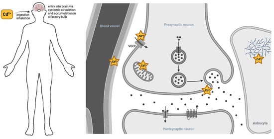 - Tsentsevitsky, A.; Petrov, A. Synaptic mechanisms of cadmium neurotoxicity. Neural Regen. Res. 2021, 16, 1762–1763. [Google Scholar] [PubMed]