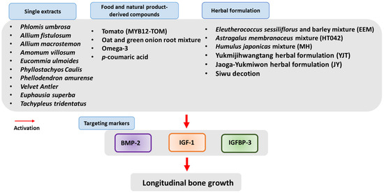 Lim DW, Lee C. The Effects of Natural Product-Derived Extracts for Longitudinal Bone Growth: An Overview of In Vivo Experiments. International Journal of Molecular Sciences. 2023; 24(23):16608. https://doi.org/10.3390/ijms242316608