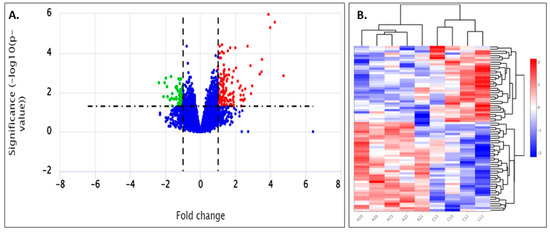 RNA samples were used to create the sequencing libraries by using the Ion Total RNA-Seq Kit v2 kit (Thermo Fisher Scientific, Waltham, MA, USA). The 9 libraries were prepared according to the manufacturer’s instructions and then sequenced using Ion Torrent technology (Ion S5XL). Raw data were processed to remove adapters and were normalized for inherent systematic or experimental biases, using the Bioconductor package DESeq2. The reads were aligned to the Dicentrarchus labrax (seabass_V1.0—GCA_000689215.1) reference genome [10] with hisat2 and bowtie2. Post-mapping quality control and basic differential expression analysis was performed with the Bioconductor package metaseqR2 [69,70]. A transcript was considered as a differentially expressed transcript if the p-value threshold was less than 0.05 (significance level) and the log2-transformed fold change (log2FC) was more than 1.