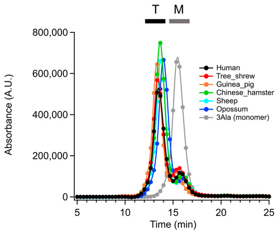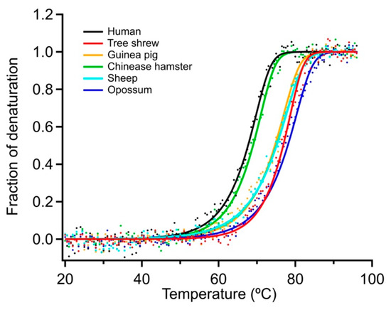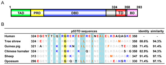 - Nakagawa, N.; Sakaguchi, S.; Nomura, T.; Kamada, R.; Omichinski, J.G.; Sakaguchi, K. The tetramerization domain of the tree shrew p53 protein displays unique thermostability despite sharing high sequence identity with the human p53 protein. Biochem. Biophys. Res. Commun. 2020, 521, 681–686. [Google Scholar] [CrossRef] [PubMed]