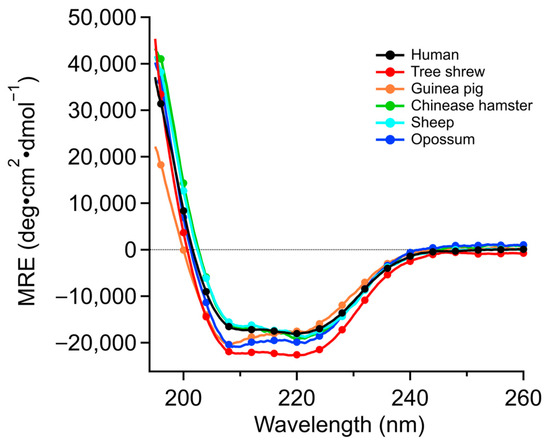 - Reed, J.; Reed, T.A. A set of constructed type spectra for the practical estimation of peptide secondary structure from circular dichroism. Anal. Biochem. 1997, 254, 36–40. [Google Scholar] [CrossRef]