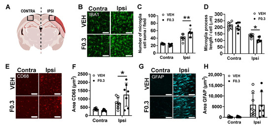 - Chen, W.; Zhang, Y.; Zhai, X.; Xie, L.; Guo, Y.; Chen, C.; Li, Y.; Wang, F.; Zhu, Z.; Zheng, L.; et al. Microglial phagocytosis and regulatory mechanisms after stroke. J. Cereb. Blood Flow Metab. 2022, 42, 1579–1596. [Google Scholar] [CrossRef]