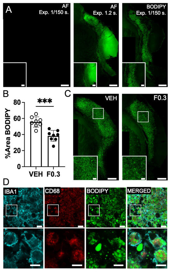 - Loppi, S.H.; A Tavera-Garcia, M.; A Becktel, D.; Maiyo, B.K.; E Johnson, K.; Nguyen, T.-V.V.; Schnellmann, R.G.; Doyle, K.P. Increased fatty acid metabolism and decreased glycolysis are hallmarks of metabolic reprogramming within microglia in degenerating white matter during recovery from experimental stroke. J. Cereb. Blood Flow Metab. 2023, 43, 1099–1114. [Google Scholar] [CrossRef] [PubMed]