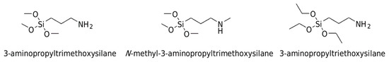 Compounds: (3-Aminopropyl)trimethoxysilane, APTS (97%, IUAPC name: 3-trimethoxysilylpropan-1-amine, CAS 13822-56-5), [3-(Methylamino)propyl]trimethoxysilane, MAPTS (95%, IUPAC name: N-methyl-3-trimethoxysilylpropan-1-amine, CAS 3069-25-8) and APTES (99%, IUAPC name: 3-triethoxysilylpropan-1-amine, CAS 919-30-2) were purchased from Sigma-Aldrich (Gillingham, Dorset, UK) and used as received.