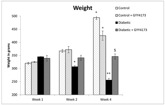 3.1. The Outcomes of H2S Treatment on Rats with Diabetes Induced by Streptozotocin with Regards to Body Weight, and Blood Glucose Level