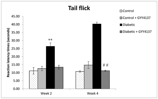2.1. Effect of Treatment of Streptozotocin-Diabetic Rats with GYY4137 on Neurobehavioral Sensory Tests