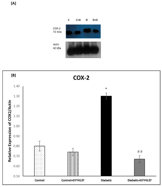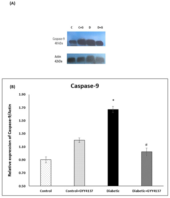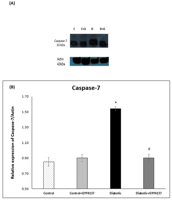 2.3. Effect of Treatment of Streptozotocin-Diabetic Rats with GYY4137 on Protein Expression of COX-1, COX-2, Caspase-7 and Caspase-9