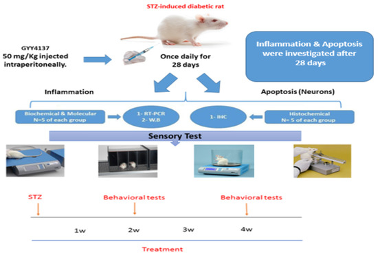 - Shayea, A.M.F.; Mousa, A.M.A.; Renno, W.M.; Nadar, M.S.; Qabazard, B.; Yousif, M.H.M. Chronic Treatment With Hydrogen Sulfide Donor GYY4137 Mitigates Microglial and Astrocyte Activation in the Spinal Cord of Streptozotocin-Induced Diabetic Rats. J. Neuropathol. Exp. Neurol. 2020, 79, 1320–1343. [Google Scholar] [CrossRef]