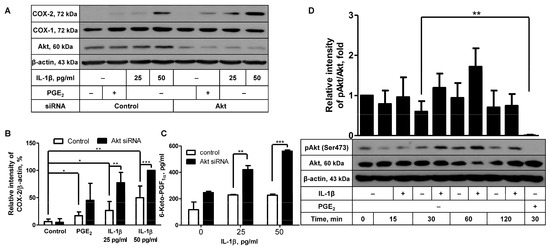2.1. Akt Knockdown Leads to Augmentation of IL-1β-Induced COX-2 Expression