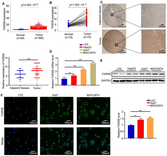 2.1. FARSB Is Highly Expressed in Hepatocellular Carcinoma