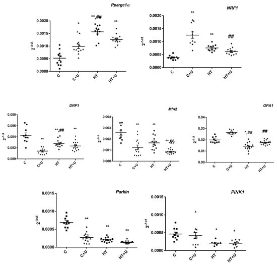 2.3. Effect of Uridine on HT-Induced Changes in the Expression of mRNA of the Proteins Responsible for Biogenesis and Mitochondrial Quality Control