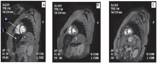 Clearing of excess iron from the heart and the liver of an iron-loaded thalassemia patient using the deferiprone and deferoxamine ICOC combination therapy protocol. The pictures show the magnetic resonance imaging (MRI) changes during the deferiprone/deferoxamine ICOC combination therapy. Short axis view of liver (L) and heart (H) of an iron-loaded male thalassemia patient (38 years, 69 Kg) at 5 months before the deferiprone/deferoxamine combination (Picture (A): Cardiac T2* was 14.5 ms and liver T2* 3.7 ms. Serum ferritin was 1626 μg/L, (estimated 1 month after the MRI scan); 9 months after the combination (Picture (B): Cardiac T2* was 17 ms and liver T2* 8.4 ms. Serum ferritin was 686 μg/L, (estimated 5 months after the MRI scan); and twenty and a half months after the combination, where normal iron levels have been achieved (Picture (C): Cardiac T2* was 20.7 ms and liver T2* 18 ms. Serum ferritin was 186 μg/L, (estimated 2.5 months after the MRI scan). ICOC: International Committee on Chelation T: signal intensity relaxation time. MRI: magnetic resonance imaging. Adapted with permission from reference [159].