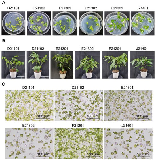 - Díaz, I.; Moreno, R.; Power, J.B. Plant regeneration from protoplasts of Capsicum annuum. Plant Cell Rep. 1988, 7, 210–212. [Google Scholar] [CrossRef]
