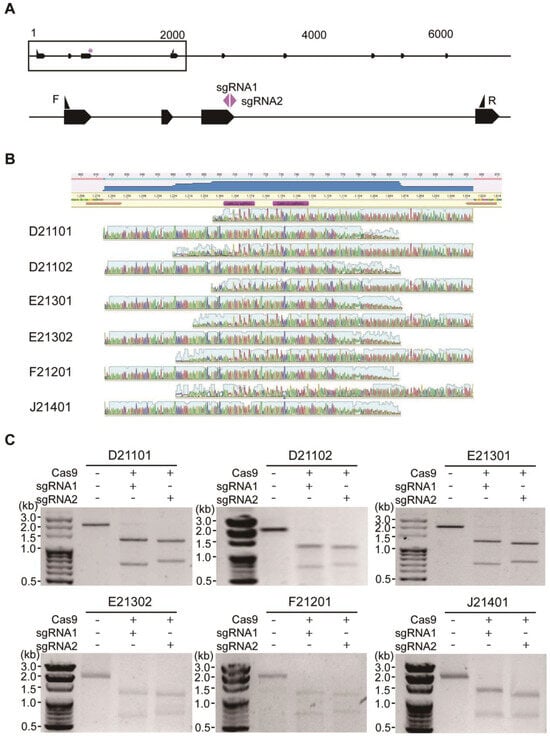 - Li, J.-F.; Norville, J.E.; Aach, J.; McCormack, M.; Zhang, D.; Bush, J.; Church, G.M.; Sheen, J. Multiplex and homologous recombination–mediated genome editing in Arabidopsis and Nicotiana Benthamiana using guide RNA and Cas9. Nat. Biotechnol. 2013, 31, 688–691. [Google Scholar] [CrossRef] [PubMed]