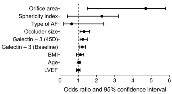 APA StyleHaertel, F., Lustermann, P., Hamadanchi, A., Gruen, K., Bogoviku, J., Aftanski, P., Westphal, J., Baez, L., Franz, M., Schulze, P. C., & Moebius-Winkler, S. (2023). Prognostic Value of Galectin-3 after Left Atrial Appendage Occlusion for Predicting Peri-Device Leakage. International Journal of Molecular Sciences, 24(23), 16802. https://doi.org/10.3390/ijms242316802