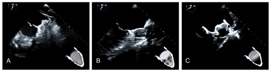 - Goebel, B.; Wieg, S.; Hamadanchi, A.; Otto, S.; Jung, C.; Kretzschmar, D.; Figulla, H.R.; Christian Schulze, P.; Poerner, T.C. Interventional left atrial appendage occlusion: Added value of 3D transesophageal echocardiography for device sizing. Int. J. Cardiovasc. Imaging 2016, 32, 1363–1370. [Google Scholar] [CrossRef]