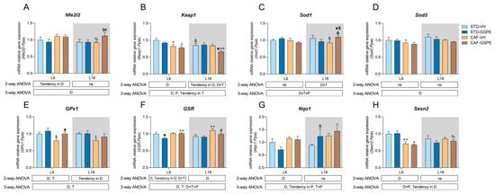 2.3. GSPE Treatment Increased Antioxidant Response Gene Expression in CAF-Fed Rats in a Photoperiod-Dependent Manner