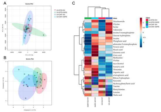 2.2. CAF Highly Impacted Hepatic Biochemical Parameters, with GSPE Reducing Liver Weight and Total Lipid Content in the L6 Condition