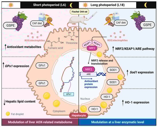 Cortés-Espinar AJ, Ibarz-Blanch N, Soliz-Rueda JR, Calvo E, Bravo FI, Mulero M, Ávila-Román J. Abrupt Photoperiod Changes Differentially Modulate Hepatic Antioxidant Response in Healthy and Obese Rats: Effects of Grape Seed Proanthocyanidin Extract (GSPE). International Journal of Molecular Sciences. 2023; 24(23):17057. https://doi.org/10.3390/ijms242317057