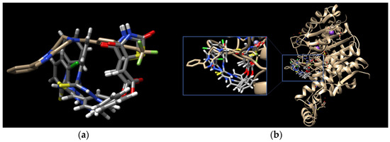 (a) Docked conformations of TZD–TSCs 2–4 superimposed with the crystal conformation of 0DI inhibitor (light brown) in complex with HDAC8 (PDB code: 3SFF); (b) binding modes of TZD–TSCs 2–4 into HDAC8. Nitrogen atoms are blue, oxygen atoms are red, and sulfur atoms are yellow.