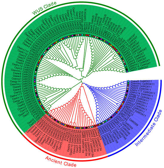 - Gu, R.; Song, X.; Liu, X.; Yan, L.; Zhang, X. Genome-wide analysis of CsWOX transcription factor gene family in cucumber (Cucumis sativus L.). Sci. Rep. 2020, 10, 6216. [Google Scholar] [CrossRef]