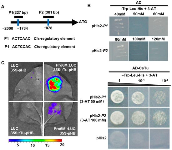 2.6. Tuberculate Fruit Gene Tu Directly Activates CsWOX9 by Binding to Its Promoter