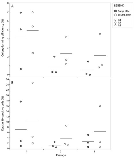- Larouche, D.; Hayward, C.; Cuffley, K.; Germain, L. Keratin 19 as a stem cell marker in vivo and in vitro. In Epidermal Cells; Springer: Berlin/Heidelberg, Germany, 2005; pp. 103–110. [Google Scholar]