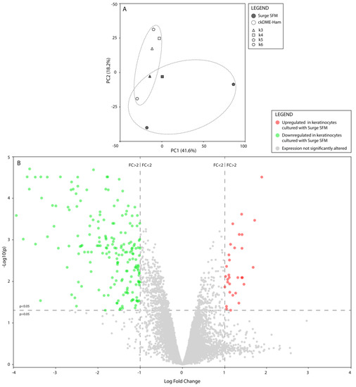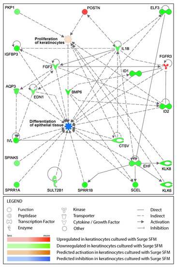 2.4. Surge SFM’s Effect on Keratinocytes’ Transcriptome Is Minute but Could Promote Growth and Stifle Differentiation through EHF Regulation