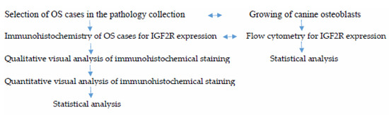 Workflow of the experiments. The IHC analysis of the clinical cases and the growth and flow cytometry of canine osteoblasts were conducted in parallel.
